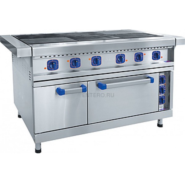 Плита электрическая Abat ЭП-6ЖШ-Э предназначена для приготовления различных блюд в наплитной посуде на предприятиях общественного питания и торговли. Модель оснащена 3-позиционными регуляторами мощности, выдвижным поддоном для сбора жидкости и сигнальными лампами, показывающими наличие напряжения в конфорках.