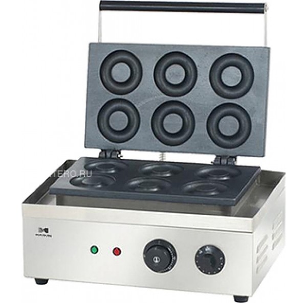 Аппарат для пончиков Hurakan HKN-GES6D используется на предприятиях общественного питания и торговли. Модель оснащена чугунными пресс-формами с 6 ячейками для пончиков. Корпус выполнен из нержавеющей стали.