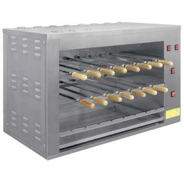 Идеальное приготовление мяса и других продуктов обеспечивается автоматически вращающимися шампурами (15 шт, из них 8 шт — на рабочем уровне) и тщательно подобранным излучателем. Каждый ряд вращающихся шампуров имеет надежный независимый привод. Конструкцией шашлычницы предусмотрен дополнительный ряд шампуров для размещения заготовок, позволяющий сделать работу на аппарате непрерывной.