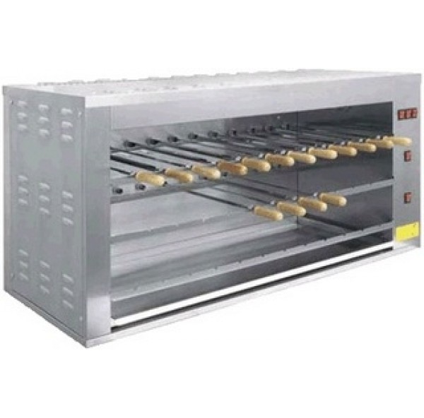 Идеальное приготовление мяса и других продуктов обеспечивается автоматически вращающимися шампурами (23 шт, из них 12 шт — на рабочем уровне) и тщательно подобранным излучателем. Каждый ряд вращающихся шампуров имеет надежный независимый привод. Конструкцией шашлычницы предусмотрен дополнительный ряд шампуров для размещения заготовок, позволяющий сделать работу на аппарате непрерывной.