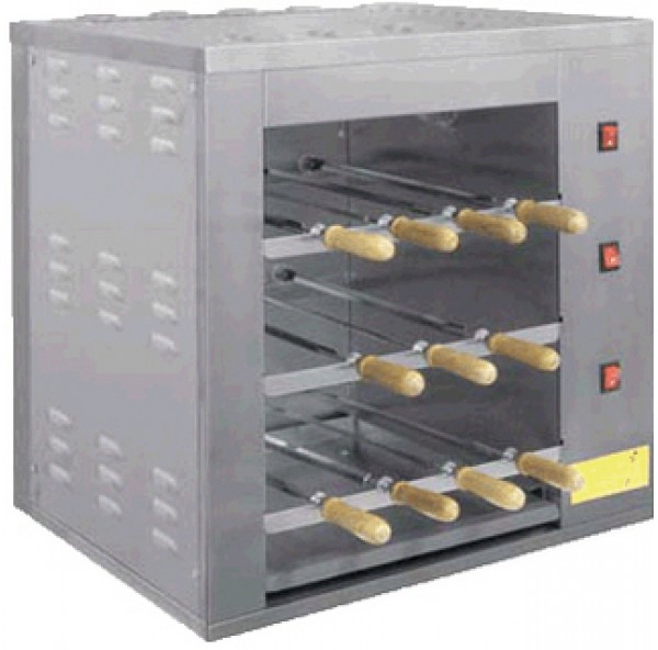 Идеальное приготовление мяса и других продуктов обеспечивается автоматически вращающимися шампурами (7 шт, из них 4 шт — на рабочем уровне) и тщательно подобранным излучателем. Каждый ряд вращающихся шампуров имеет надежный независимый привод. Конструкцией шашлычницы предусмотрен дополнительный ряд шампуров для размещения заготовок, позволяющий сделать работу на аппарате непрерывной.