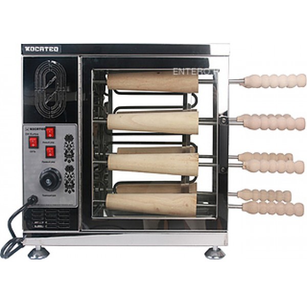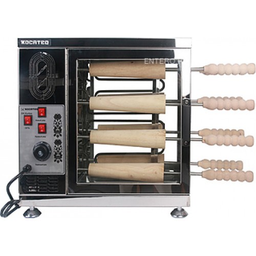 Настольная печь для трдельников Kocateq EPC01ECO используется на предприятиях общественного питания и торговли, в пекарнях и кондитерских для выпечки до 8 венгерских калачей. Модель оснащена панелью управления, термостатом для автоматического поддержания температуры. Корпус выполнен из нержавеющей стали AISI 201, ножки - из металла, с пятками - из пластика.