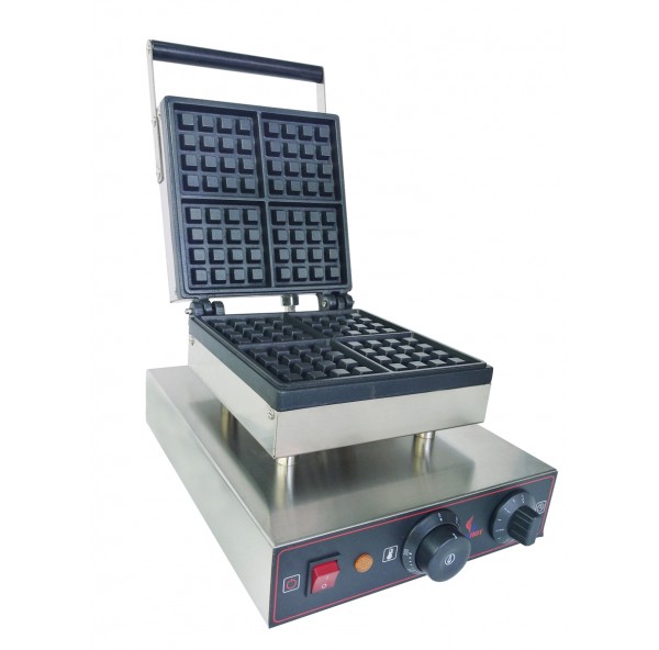 Вафельница Airhot WE-1B используется на предприятиях общественного питания и торговли для выпекания бельгийских вафель. Модель оснащена терморегулятором и электронным таймером. Корпус выполнен из нержавеющей стали, жарочная поверхность - из чугуна с антипригарным покрытием.