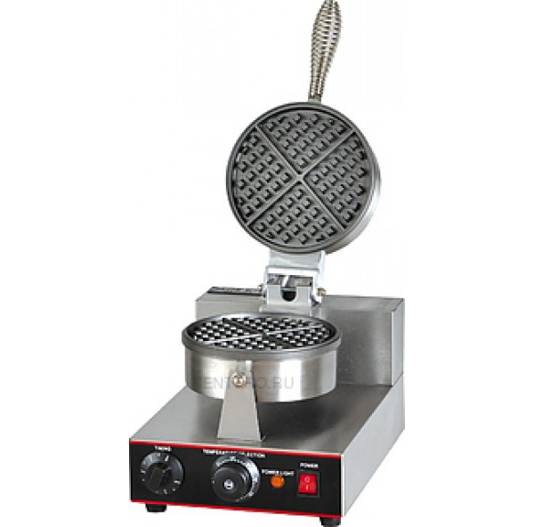 Вафельница EKSI HWB-1 используется на предприятиях общественного питания и торговли для выпечки вафель круглой формы. Модель оснащена электромеханической панелью управления с таймером и регулировкой температуры и устойчивыми ножками. Жарочная поверхность выполнена из чугуна с высокой теплопроизводительностью.