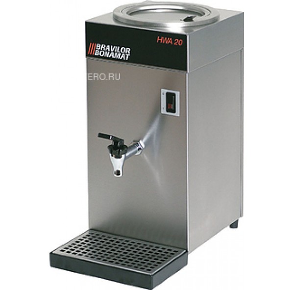 Водонагреватель Bravilor Bonamat HWA 20 используется на предприятиях общественного питания и торговли для приготовления горячей воды, предназначенной для супа, каши, чая и других горячих напитков. Модель оснащена "не капающим" краном, быстрым нагревом воды до требуемой температуры, термостатом, лампочкой-индикатором, показывающим, что вода нагрелась, и поддоном для капель. Корпус выполнен из нержавеющей стали.