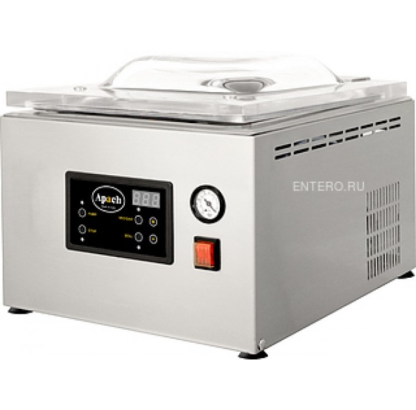Вакуумный упаковщик Apach AVM425 используется на предприятиях общественного питания и торговли для упаковки различных продуктов в специальных пакетах для увеличения срока их хранения. Модель оснащена влагозащищенной электронной панелью управления с дисплеем, полностью автоматическим циклом упаковки и бесшовной камерой с закругленными углами, что облегчает процесс чистки. Корпус и камера выполнены из нержавеющей стали.