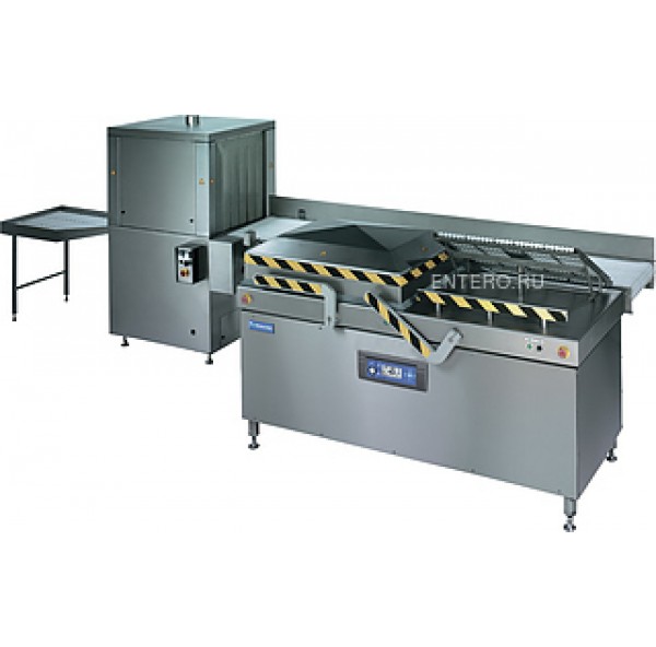 Вакуумная линия Henkovac А-5000L предназначена для автоматической вакуумной упаковки продуктов, полуфабрикатов и промтоваров с термоусадкой запаянных пакетов на предприятиях пищевой промышленности и торговли. Упаковщик рассчитан на крупные производства с большими объемами упаковываемой продукции и для групповой упаковки мясных продуктов весов до 30 кг с последующей усадкой пакета для транспортировки.