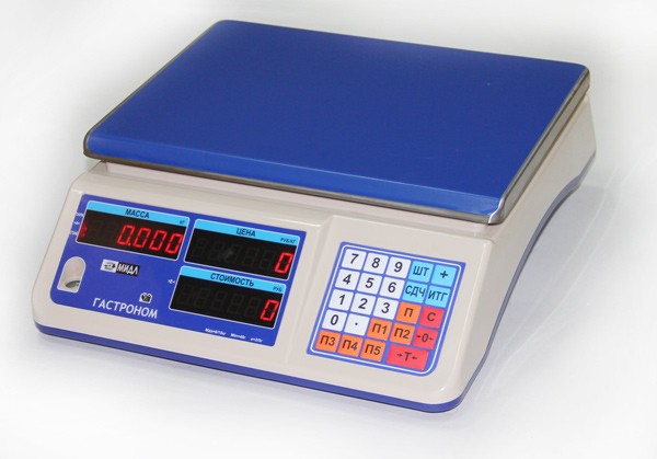 Электронные торговые весы без стойки. 2-х сторонний светодиодный/ЖК дисплей. Количество разрядов индикации: масса - 6, цена - 6, стоимость - 6. Max=6...30 кг; Min=20...100 г; дискретность 1/2г; 2/5г; 5/10г (в зависимоти от модели). Платформа 230х320 мм нерж., функции: суммирование взвешиваний, подсчет штучных товаров, рассчет сдачи, тарирование, принудительное обнуление, 5 программуруемых клавиш быстрого ввода цены, питание: от сети 220В, аккумулятор 6 В/4Ач