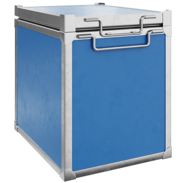 Снаружи корпус изготовлен из ударопрочного полистирола и защищен ребрами жесткости из оцинкованной стали. Внутренний корпус термоконтейнера выполнен из стеклопластика, не имеет швов и способен выдерживать воздействие температур от -30 до +90°С. Стенки цельнозаливного корпуса толщиной от 82 до 110 мм имеют эффективную термоизоляцию и жесткость, заполнены пенополиуретаном плотностью до 51 кг/м3, что обеспечивает высокий коэффициент теплопроводности 0,028-0,039 Вт/(м·K). Дверь термоконтейнера оснащена надежным и высокопрочным запорным устройством. При закрывании дверь плотно прижимается к специальному уплотнению, встроенному в корпус, что обеспечивает полную герметичность и изоляцию от теплопритоков.